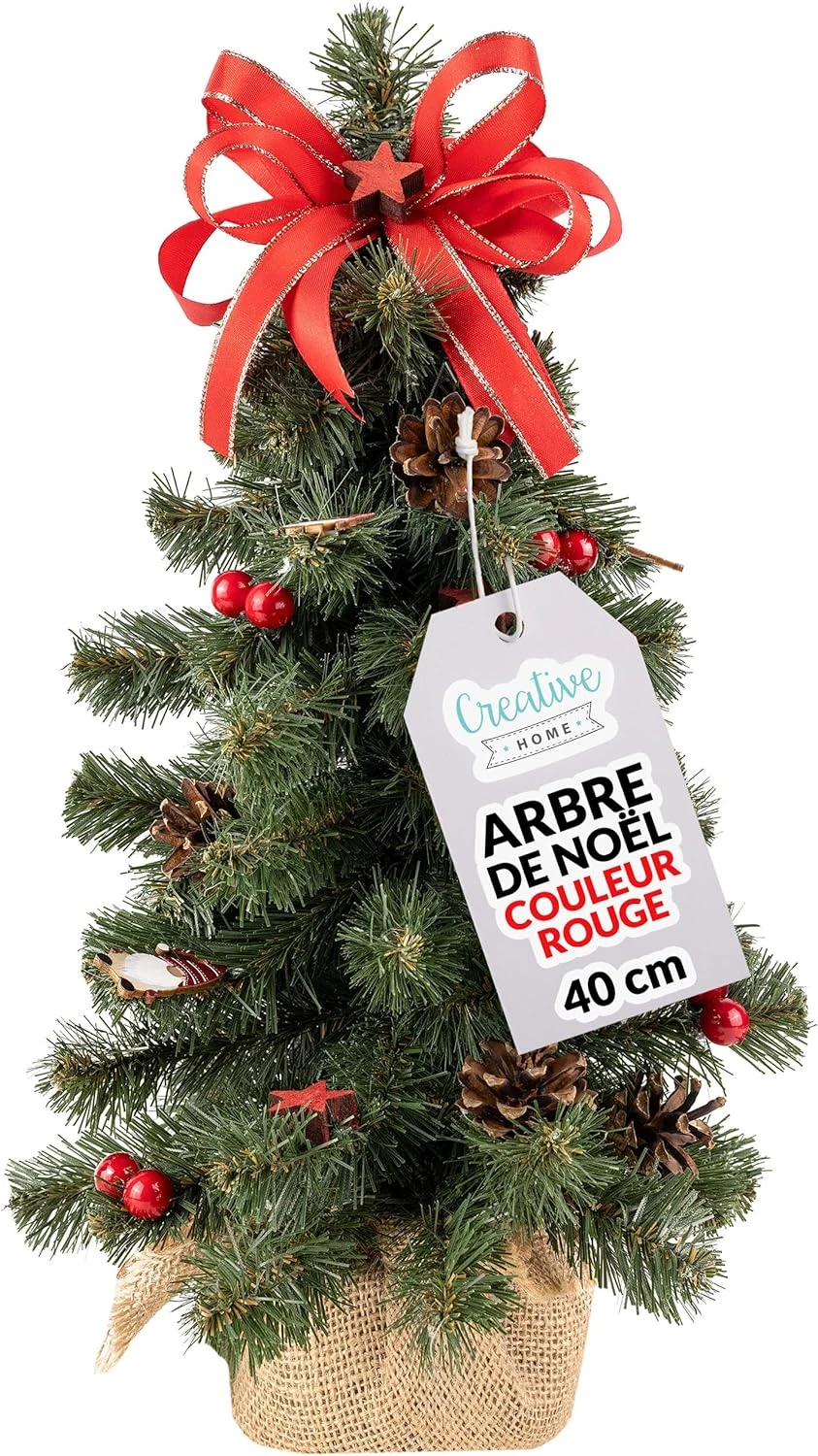 Creative Home Mini Sapin De Noel Artificiel Rouge 40 Cm | Petit Sapin De Noel Artificiel | Décoration Noel Petit Bureau | Sapin De Noël Artificiel