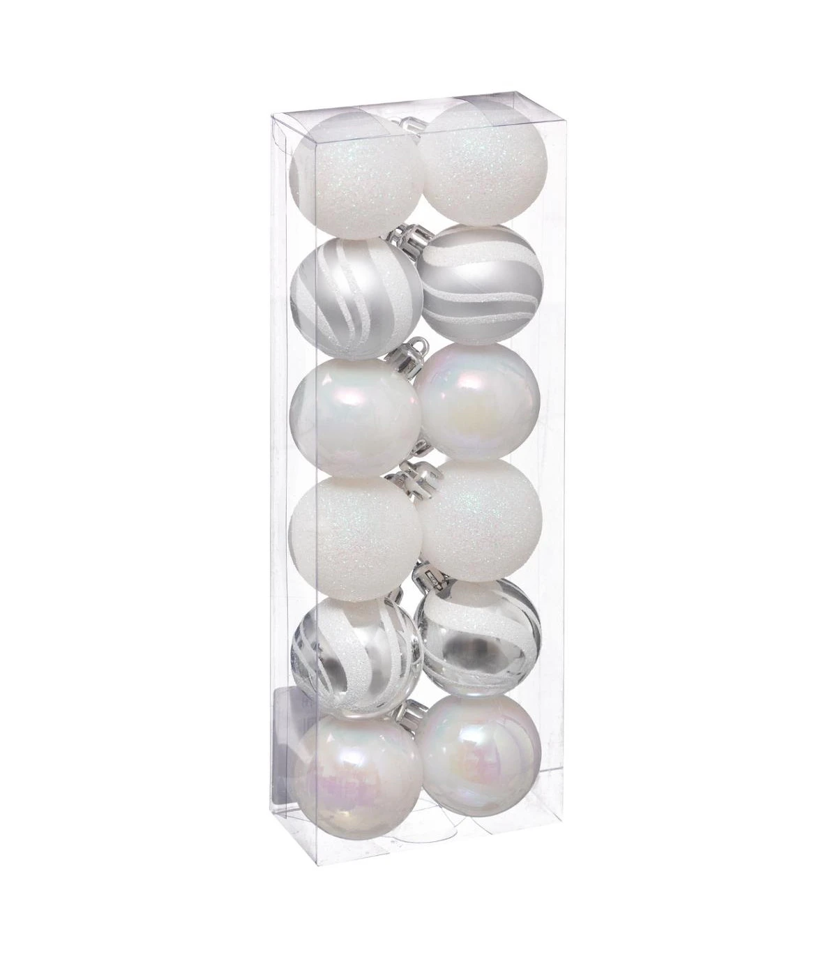 Déco de sapin Lot de 12 Boules de Noël D 4 cm – Argent et Blanc —