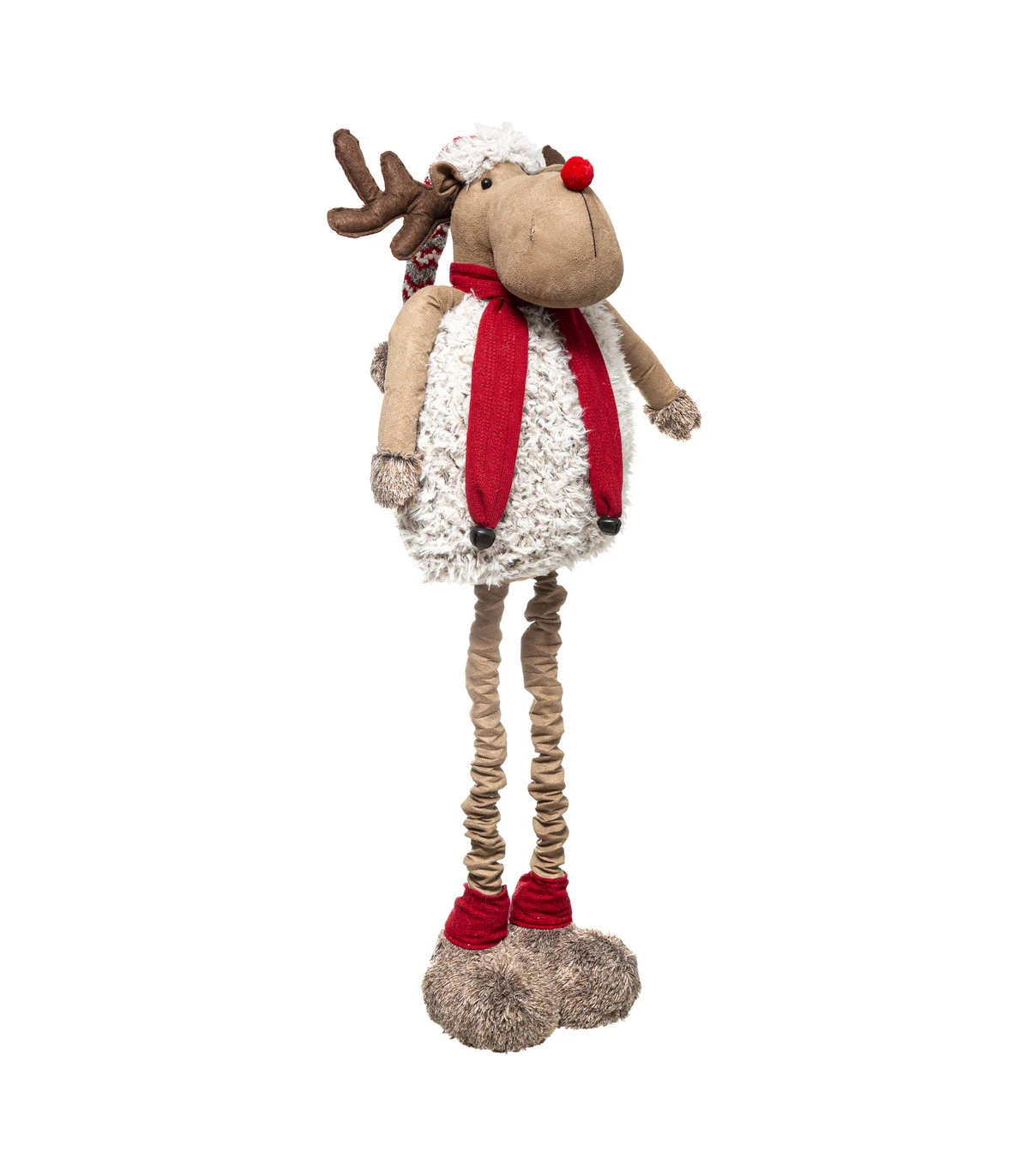 Déco Noël Renne télescopique avec écharpe et fourrure H maxi 144 cm —