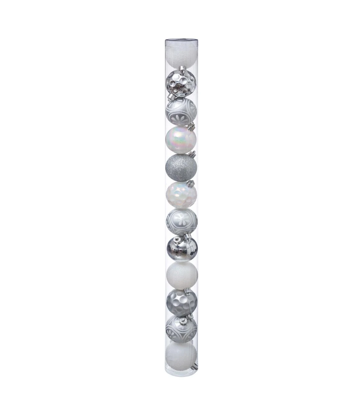 Décoration de sapin Lot de 12 Boules de Noël D 6 cm – Argent et Neige —