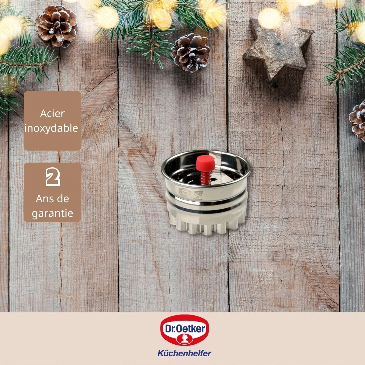 Dr Oetker vous propose cet emporte piece patisserie pour réaliser un petit biscuit linzer grâce au poussoir, le smiley permet de faire des biscuits avec de la confiture, du caramel, du chocolat