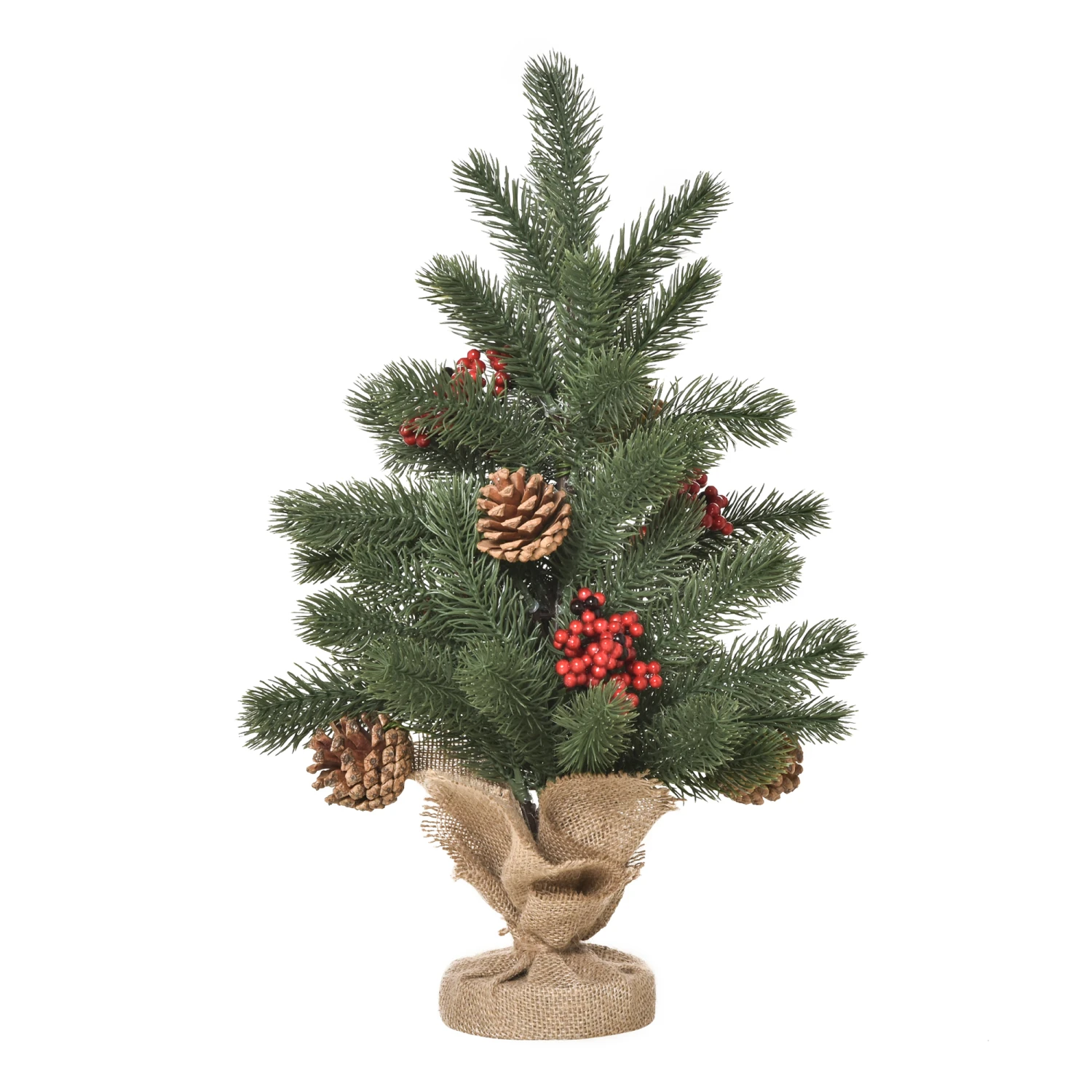 – Sapin aspect Nordmann grand réalisme avec longues épines, 4 pommes de pin et 4 baies rouges plus vrai que nature !