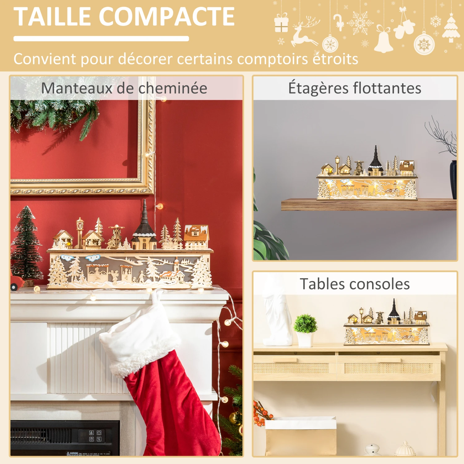 – Splendide village de Noël miniature avec figurines, nombreux décors (chalets, sapins enneigés, église, etc.) reproduits dans les moindres détails