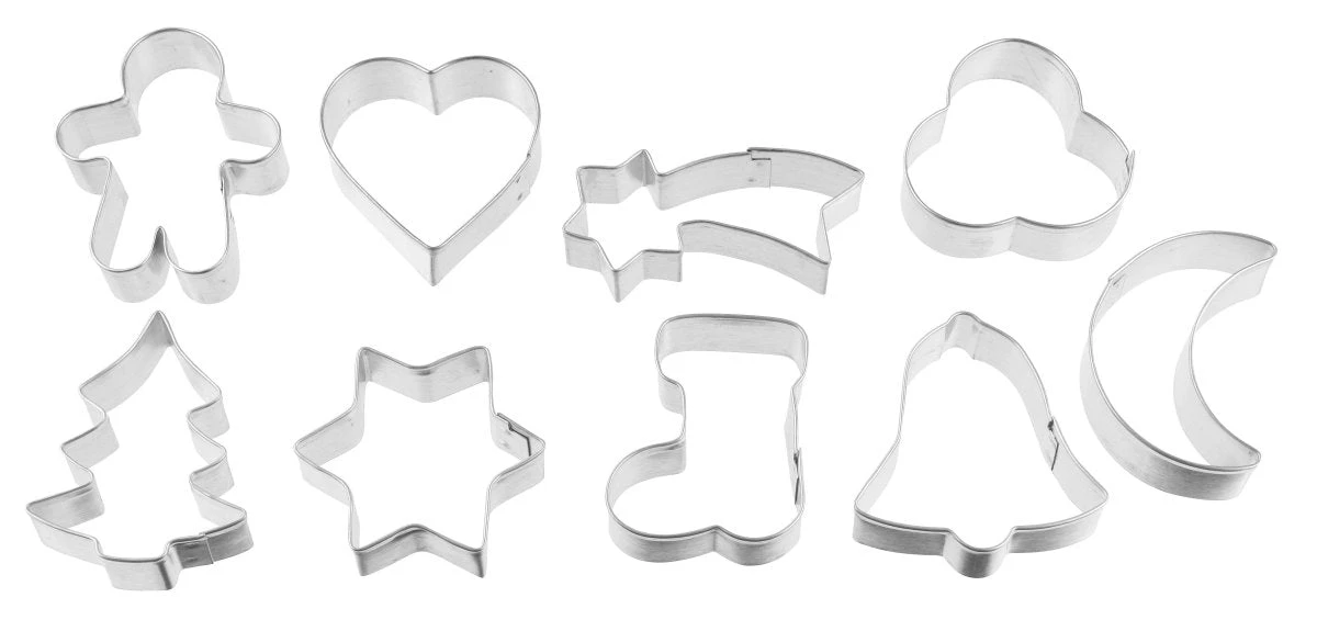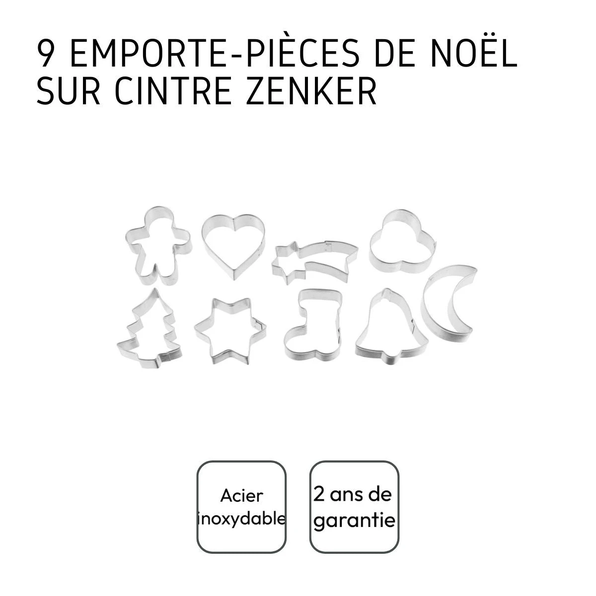 DESCRIPTION : Zneker vous propose cet ensemble de 9 emporte-pièces présentés sur un cintre pour réaliser vos biscuits et sablés de noël, à vous de jouer ensuite pour les décorer joliment, idéal pour décorer une table de fêtes LE PETIT + : Le cintre qui maintient les 9 emporte-pièces ensemble vous permettra de ne pas les perdre et conserver l’assortiment ensemble COMPOSITION : Acier inoxydable DIMENSIONS : env 5 x 1,7 cm ENTRETIEN : Les emporte-pièces ne sont pas compatibles au lave-vaisselle Noël est une fête importante car toute la famille est rassemblée pour célébrer et partager de bons moments. Pour vous aider à passer de bonnes fêtes, Zenker vous propose de réaliser des biscuits de Noël ou des sablés et pour cela vous pouvez utiliser ces emporte-pièces de Noël. Ce lot de 9 emporte-pièces comprend un bonhomme en pain d’épices, un cœur, une étoile filante, un nuage, un sapin, une étoile, une botte de père noël, une cloche et une lune. À vous de les décorer ensuite.