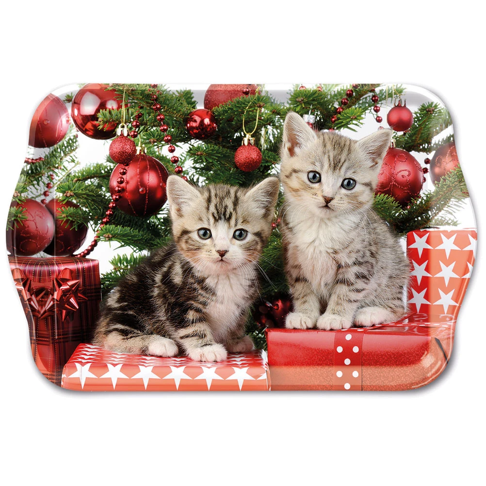 Mini plateau rectangulaire Chatons Noël En mélamine Dim : 20.5 x 13.5 cm