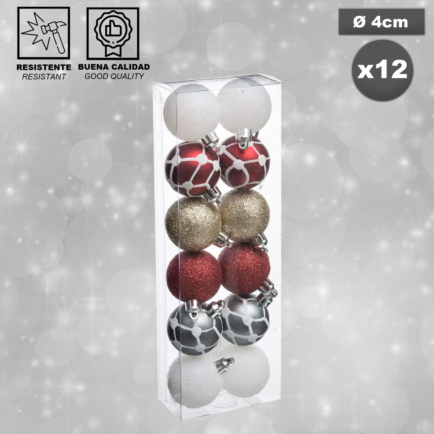 Pack de décoration de Noël: 12 balles de Noël de 40 mm. Conception assortie.