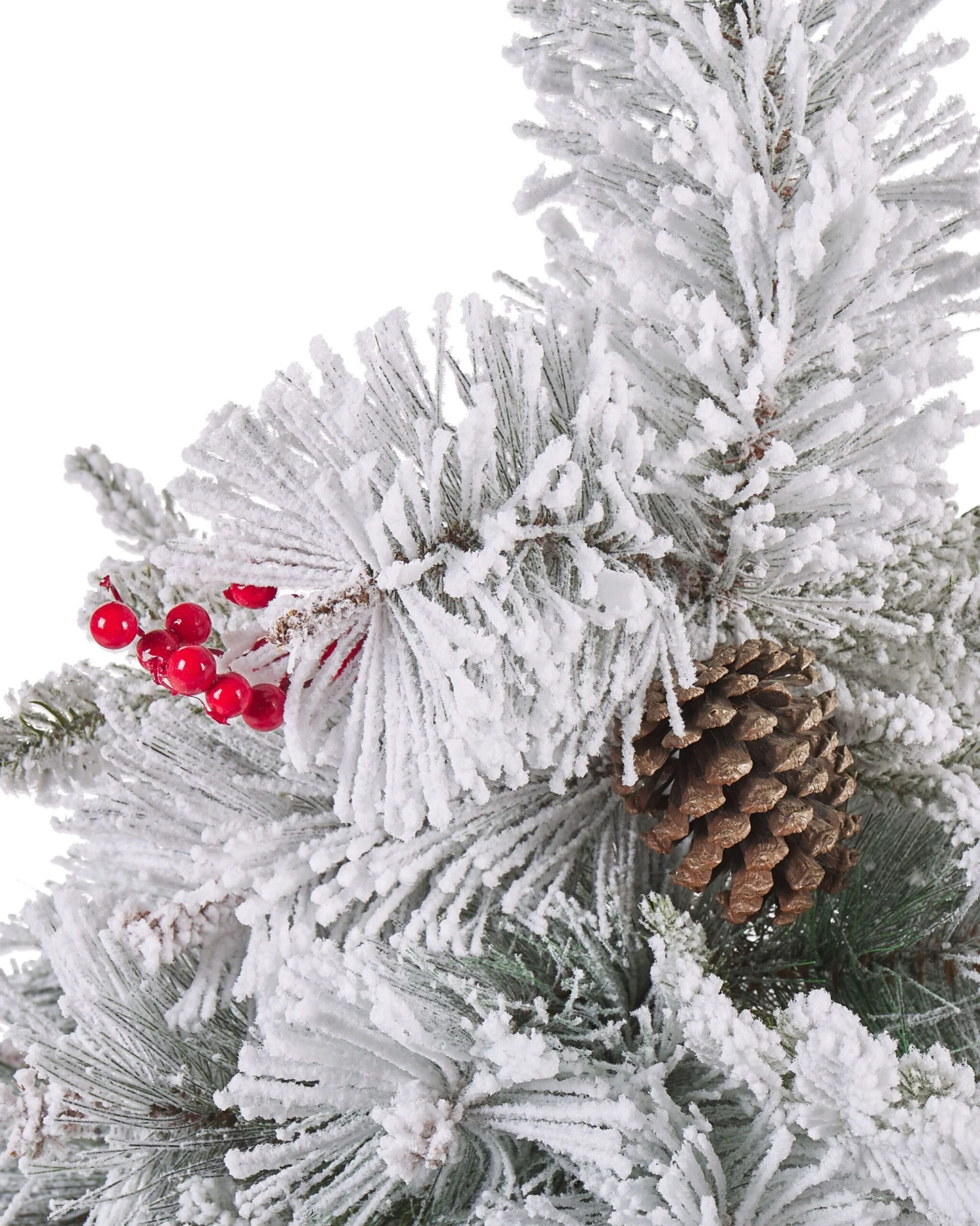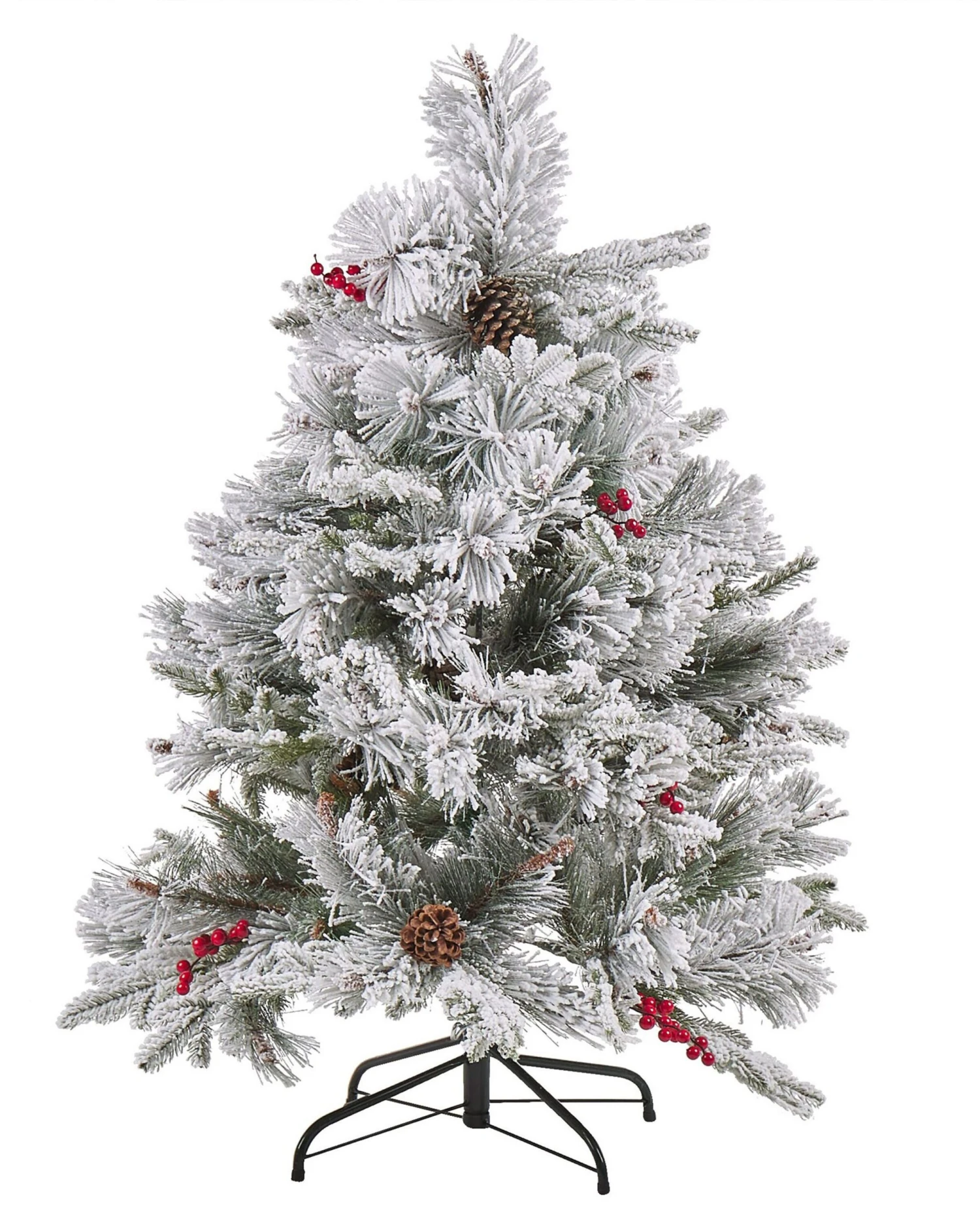 Sapin artificiel recouvert de fausse neige. Introduisez l’ambiance de Noël dans votre intérieur avec ce sapin artificiel. Fabriqué en matière synthétique, il durera des années avec un entretien minimal et sans les défauts d’un sapin naturel. Ses feuilles sont recouvertes de fausse neige, ce qui renforce le thème de l’hiver. Le sapin est également doté d’éléments décoratifs fixés aux brindilles : vous y trouverez de jolies pommes de pin et des canneberges. Il ne vous reste plus qu’à installer des cadeaux en dessous pour un Noël féerique !