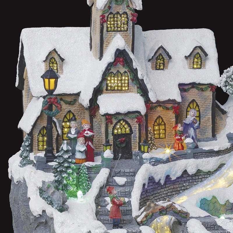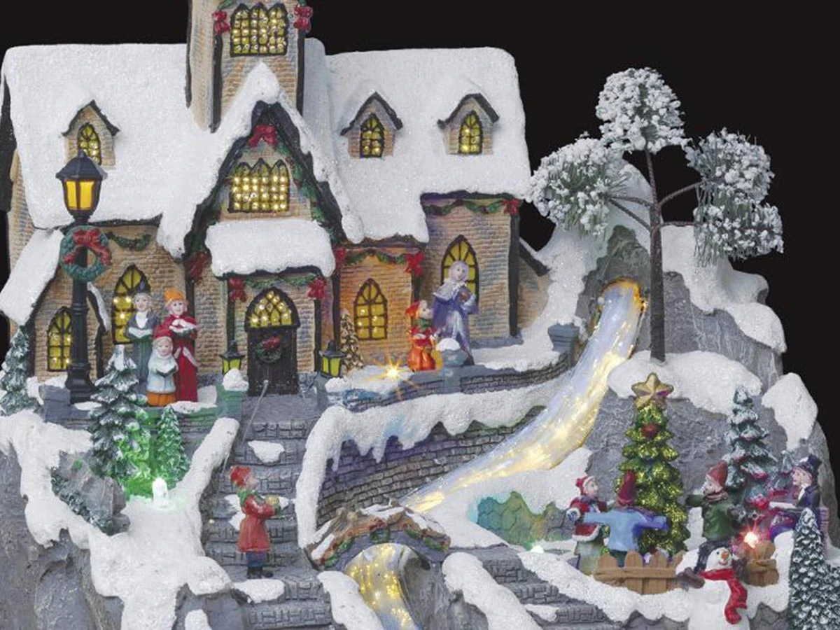 Le Village de Noël Église du Village est lumineux et musical pour des fêtes de Noël magiques. Ce beau village de la marque Fééric Christmas est composé de 2,4 kg de polyrésine.Alimentation : 220 – 240 VCouleur : MulticoloreCouleur câble d’alimentation : NoirDimensions (L x l x H) : 31 x 29 x 42,5 cmEffet de lumière : Forme : Garantie : 1 anLongueur : Longueur câble d’alimentation : 3,5 mMarque : FÉÉRIC CHRISTMASMatière(s) : PolyrésineMinuteur : NonPoids : 2,4 kgProgrammable : NonType d’alimentation : ElectriqueType de produit : Guirlande lumineuseType d’éclairage : LEDUnivers : NoëlUtilisation : Intérieur